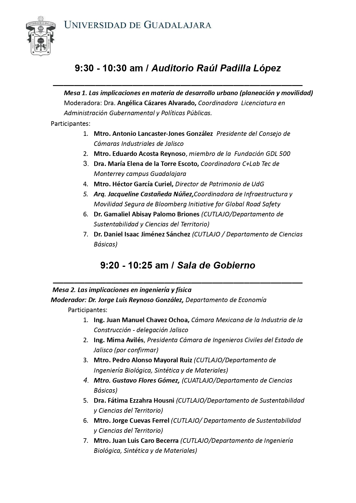 Auditorio Raúl Padilla López y Sala de Gobierno - CUCEA, 9:00 -14:30 hrs
