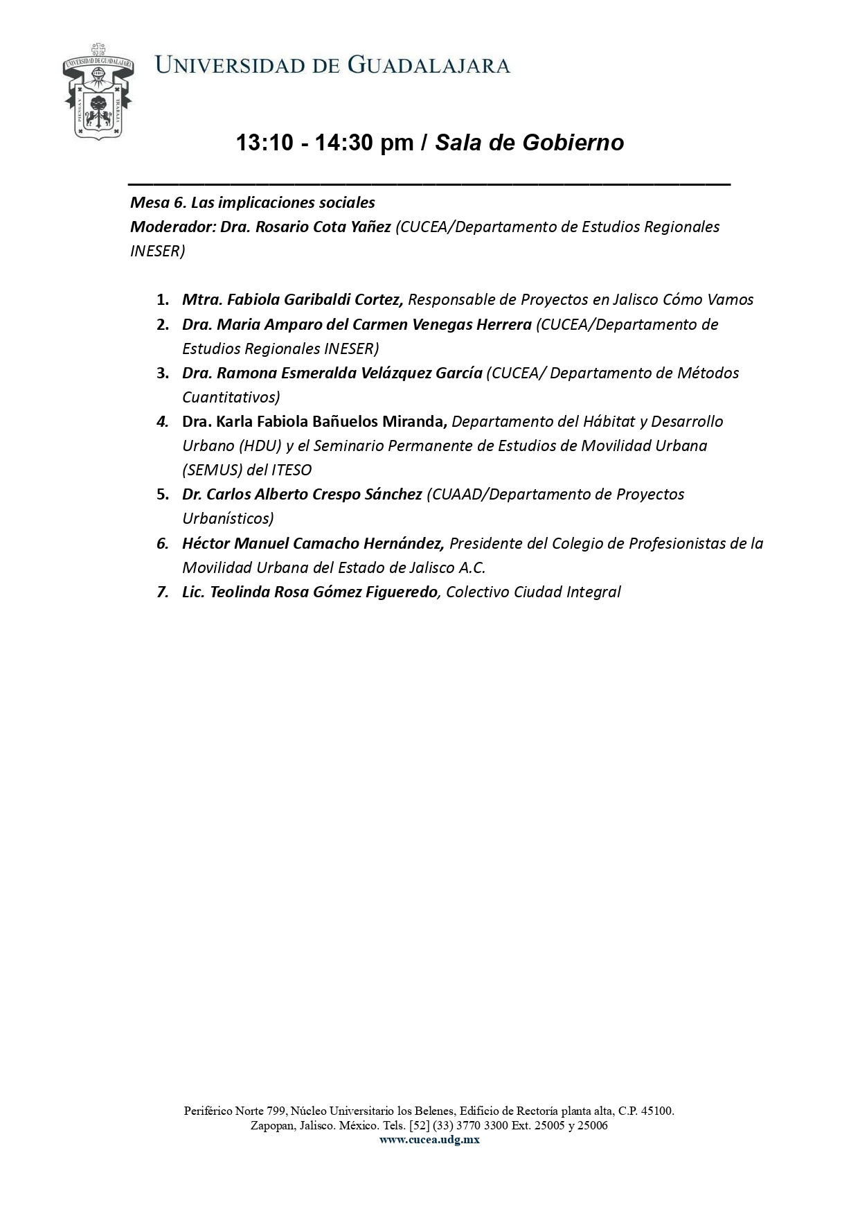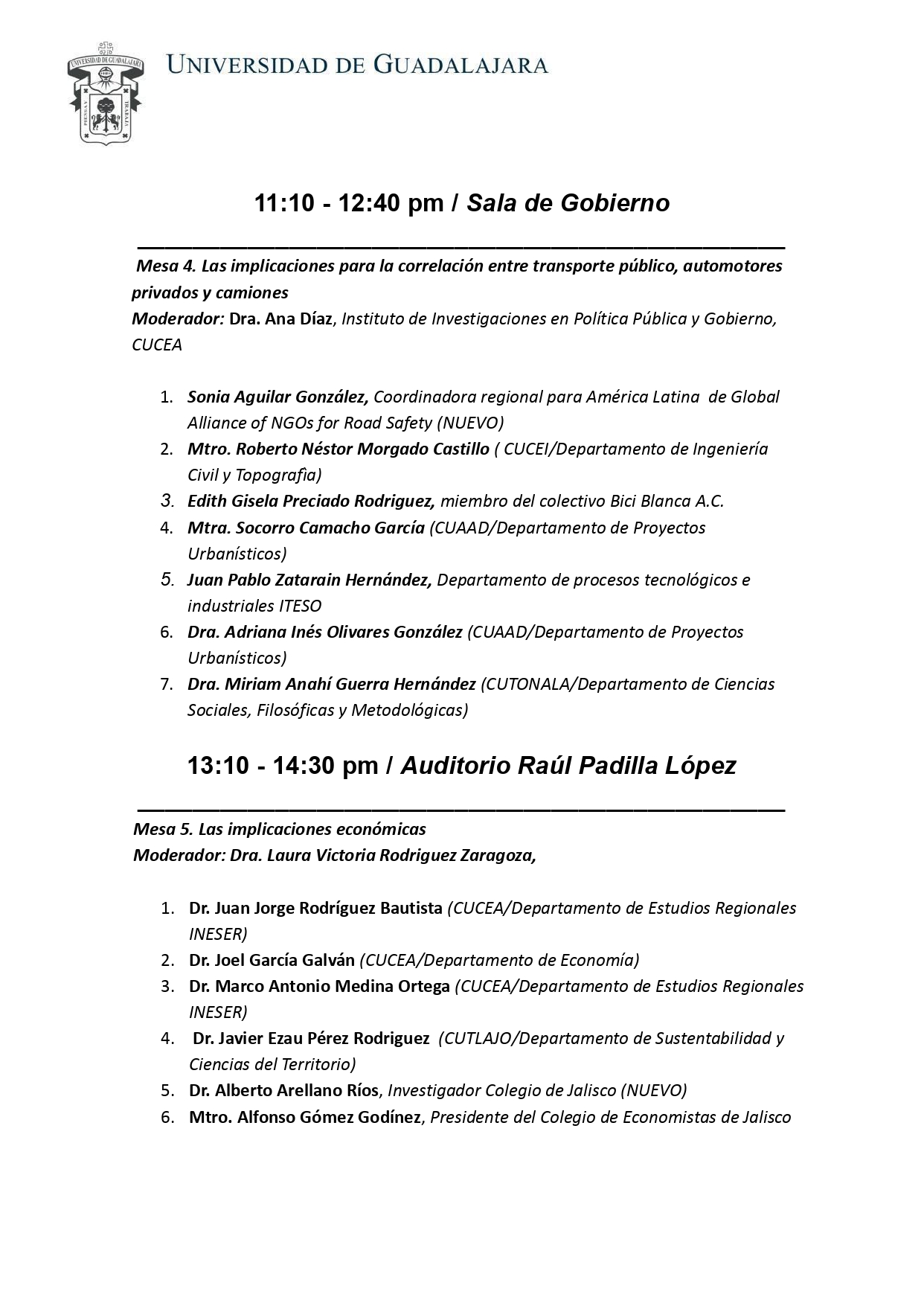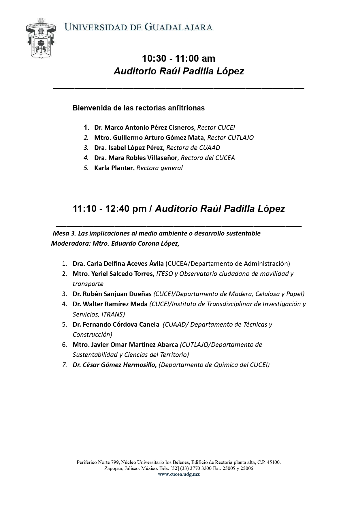 Lugar: Auditorio Raúl Padilla López y Sala de Gobierno - CUCEA, Zapopan, Jalisco, México.